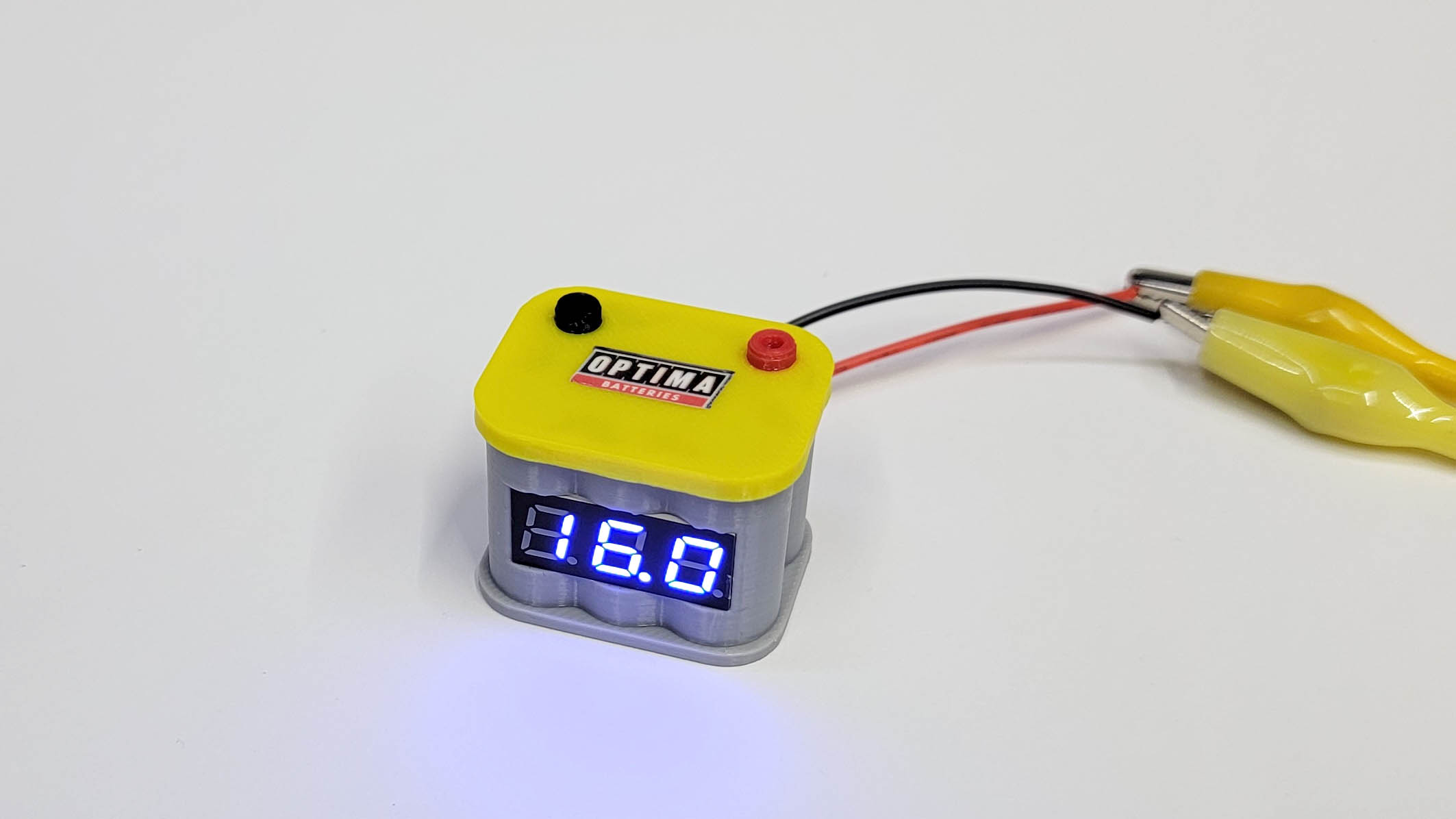 Bring your 1:10 scale crawler or trail rig to life with this highly detailed 3D‑printed scale car battery. It features a bright yellow top, clean gray sidewalls, and a built‑in 3‑digit blue LED volt meter that adds an eye‑catching touch of realism to your engine bay or interior. Sized for easy placement in most scale builds, the battery measures approximately 33 mm wide, 27 mm tall, and 26 mm deep—compact enough to fit almost anywhere while still standing out as a convincing scale detail. A simple upgrade that delivers a big boost in authenticity and visual flair