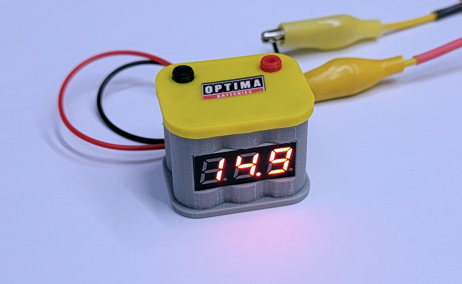 Bring your 1:10 scale crawler or trail rig to life with this highly detailed 3D‑printed scale car battery. It features a bright yellow top, clean gray sidewalls, and a built‑in 3‑digit red LED volt meter that adds an eye‑catching touch of realism to your engine bay or interior. Sized for easy placement in most scale builds, the battery measures approximately 33 mm wide, 27 mm tall, and 26 mm deep—compact enough to fit almost anywhere while still standing out as a convincing scale detail. A simple upgrade that delivers a big boost in authenticity and visual flair.