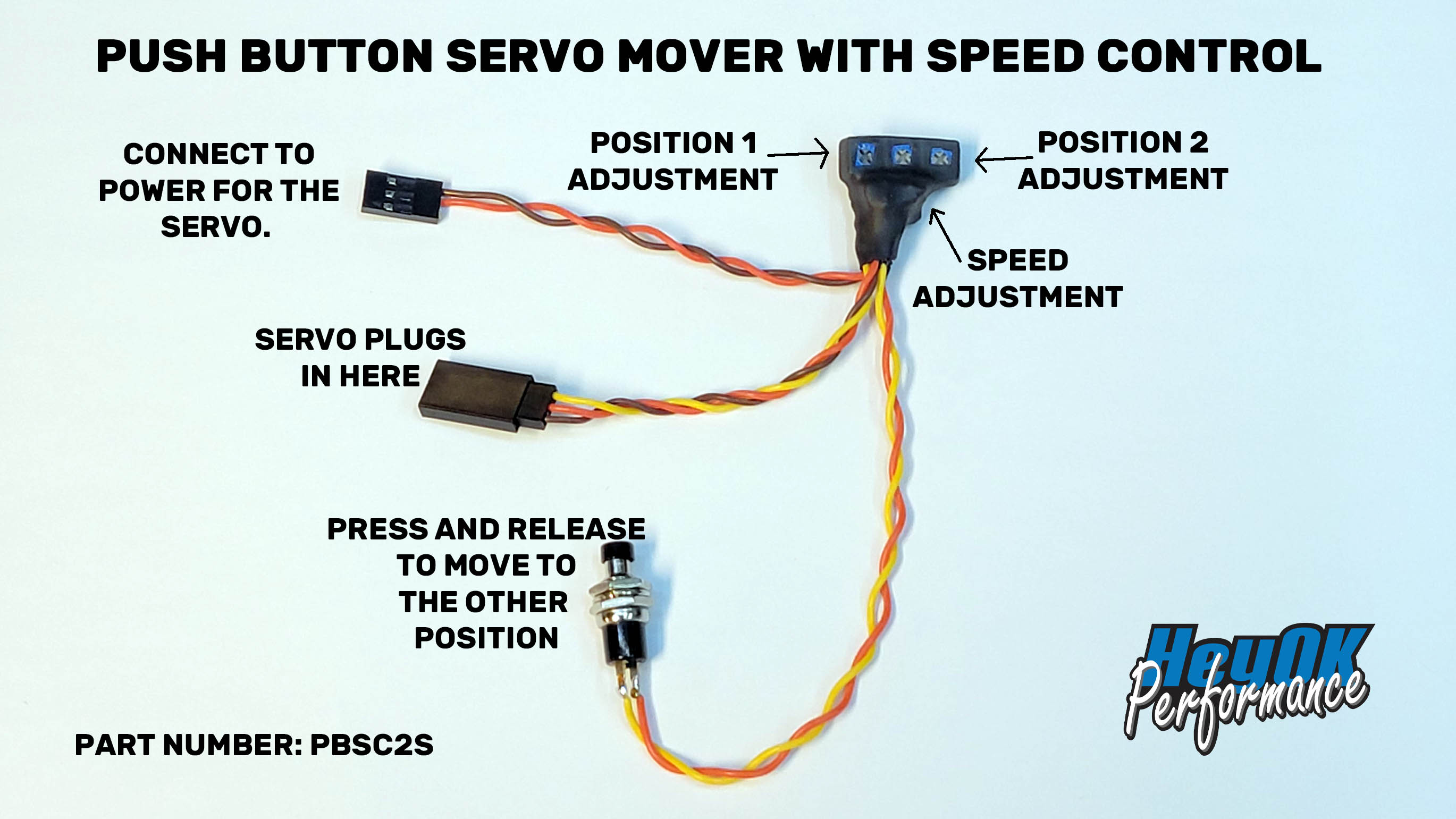 The controller features three straightforward adjustments: two for setting the end positions of the servo, and one for dialing in the transition speed between them. Once configured, a single push of the button moves the servo cleanly from one position to the other.